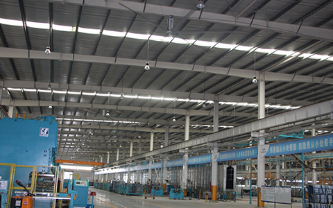 廣州番禺工業(yè)風(fēng)扇/大吊扇安裝/工業(yè)節(jié)能風(fēng)扇廠家 工業(yè)大風(fēng)扇是現(xiàn)在工業(yè)場所或者環(huán)境差通風(fēng)效果不好的場所常見的一種通風(fēng)設(shè)備,具有通風(fēng)效果好,耗能低的等特點,但是再好的產(chǎn)品我們也不能忽略它可能會帶來的危害,因此,我們一定要做好一定的防護措施,杜絕一切危險來源,給人們一個安全舒適的使用體驗。在安裝工業(yè)大風(fēng)扇的時候,安裝完畢要仔細(xì)的檢查兩遍,當(dāng)工業(yè)大風(fēng)扇的的吊架與鋼結(jié)構(gòu)的屋頂緊固完畢后,可以額外的用鋼絲再纏繞兩遍,以確保風(fēng)扇安裝的穩(wěn)固性、安全性。